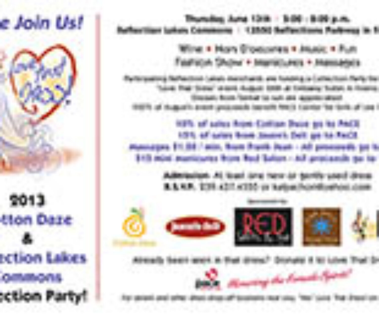 In The News 04 Jun 2013 Cotton Daze & Reflection Lakes Commons Merchants Hosting a Fashion Show & Fun to Benefit Love That Dress! Gather up one or more new or gently used dresses and join Cotton Daze and the Reflection Lakes Commons merchants… CONRIC PR