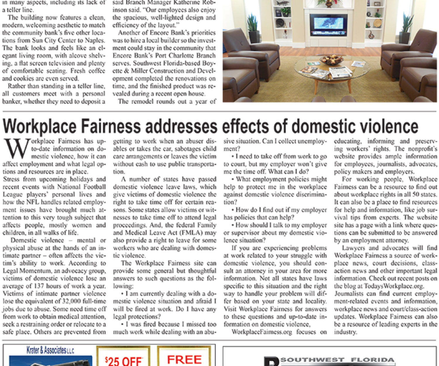 In The News 08 Jul 2015 Frances Fabbro named Encore Bank Sun City Branch Manager Encore Bank is pleased to announce that Frances Fabbro has been appointed as its new Sun City Center Branch Manager.… CONRIC PR